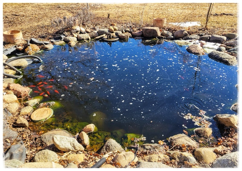 The pond and the fish are safe and well. Spring is on its way we hope!