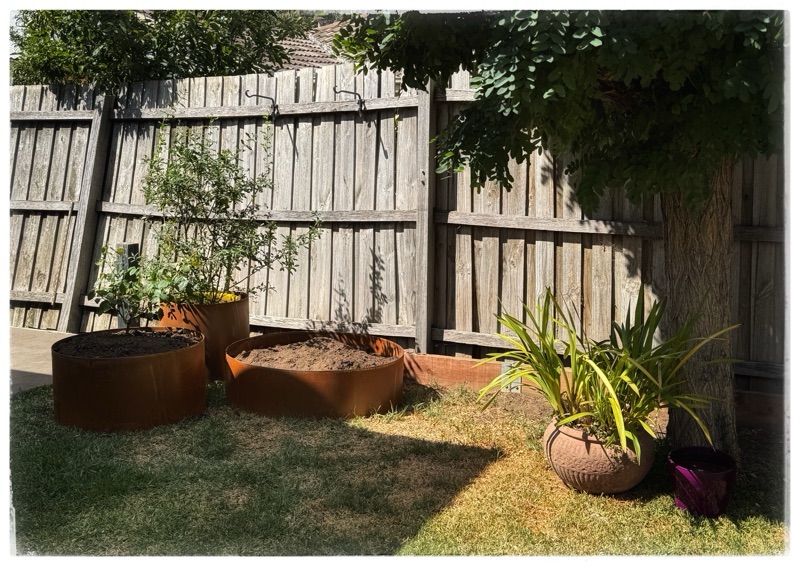And yes I see that fence. Leaning into the neighbours place. We will go into discussions with the neighbours at some point to build a new one. I will leave the back fence free of gardens – for work to be done down there some time in the future. Hopefully not too soon as it will be an expense.