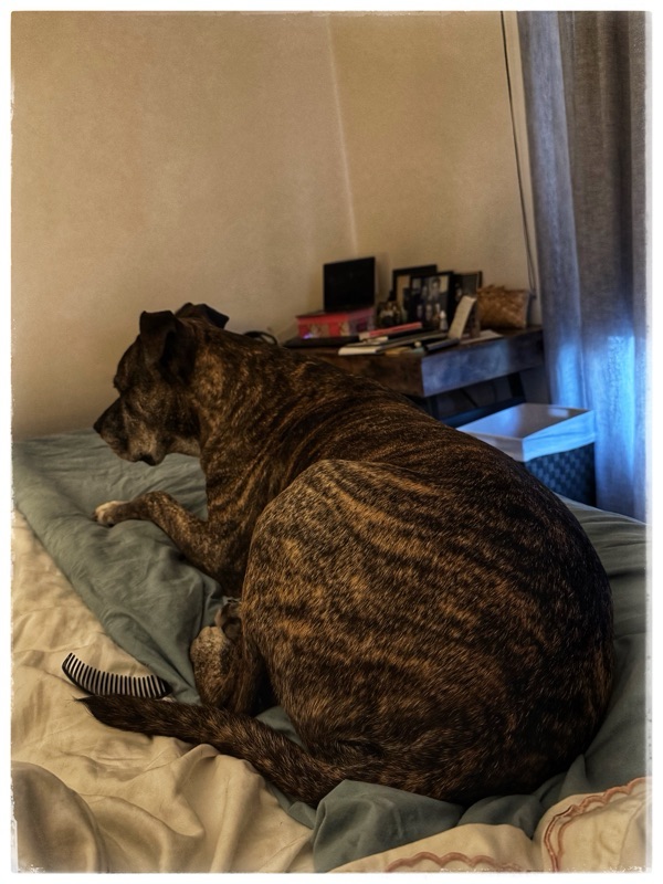 TimTam is determined to be on my bed in the morning so I am going with the flow. I am Not a bed dog person but there you are.