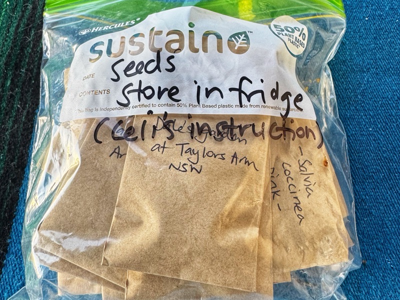 • I have two bowls of water out in the garden already. We pay for water here !! The horror! I have plans for a passionfruit vine but not until I get the new fence which may be a year or so away unfortunately. Maybe on the side fence. They will grow here for sure! The package of Dales seeds are SO welcome! I will keep the little envelopes so I can save more seeds each year – I even brought my little seed saving envelopes with me I am such a geek!!
