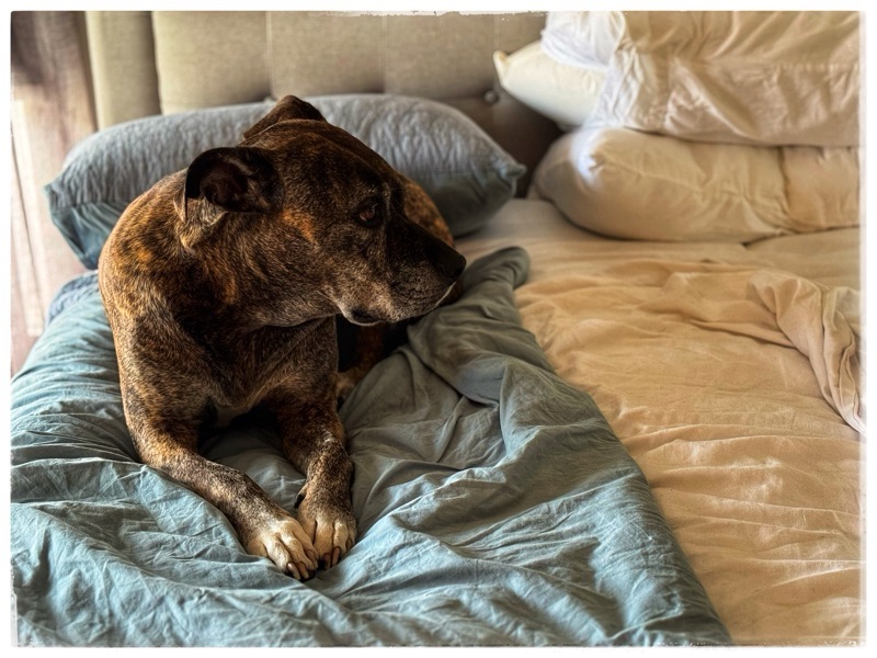 When I have finished my morning pages she just relocates to the couch. We go for a morning walk if it is not too hot too early but she will spend her days laid out on the couch until her evening walk. Boo would be appalled.