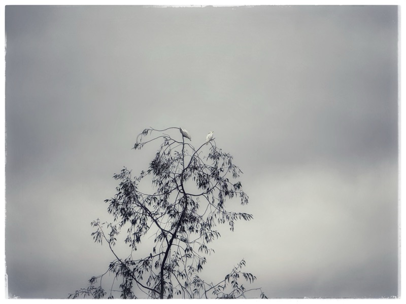 That is the highest tree around. I am fairly sure it is a gum. The cockatoos love it. They are so loud. Loud and raucous. For such beautiful birds. And thieves apparently! They can strip a fruit tree bare in minutes – and steal tomatoes – so I am told.