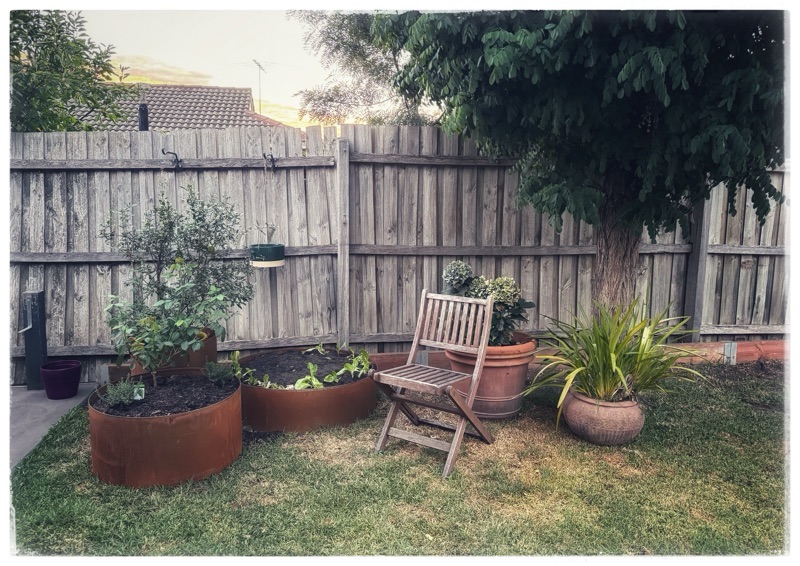 Here in Melbourne – in the suburbs – today I will mow the front lawn. We have an electric mower so I plug it in in my bedroom and pass the cord out to myself through the window. I will add the clippings to the back portion of our new garden bed. (It is so silty) and then we have a trip planned to the Tip Shop. We are looking for little tables and maybe even a chair or two for outside. I need a desk for my studio and a potting table. I don’t mind how they look. Four legs will do me. And of course ceramic pots. You never know.
