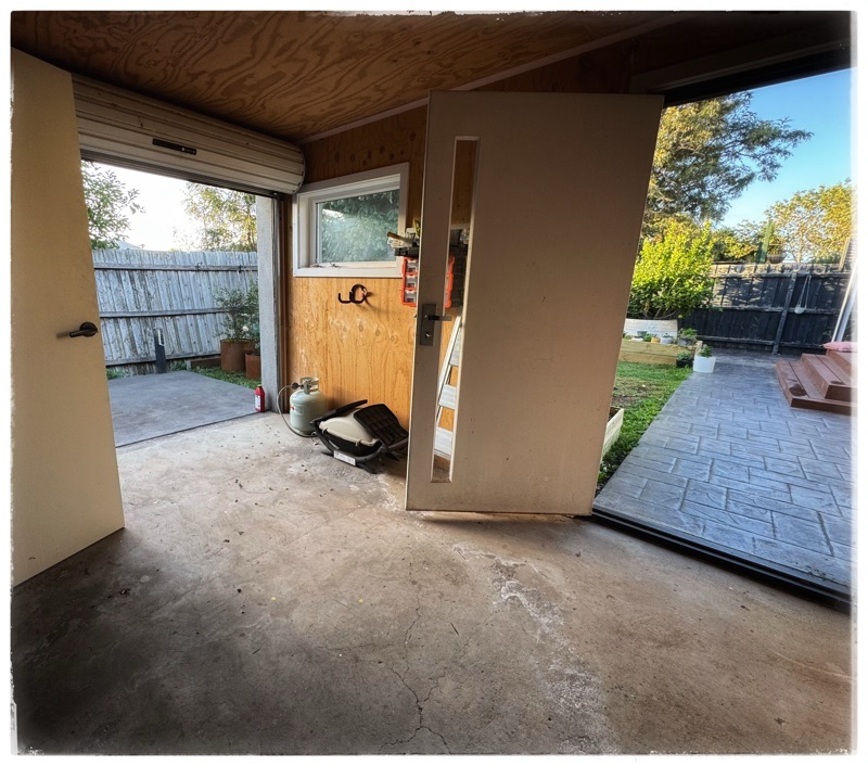So, just as it begins to get cooler (I would never call this cold) I will begin work on the outside little shed. So much potential. My sound studio/study is through another door screen right of this shot.